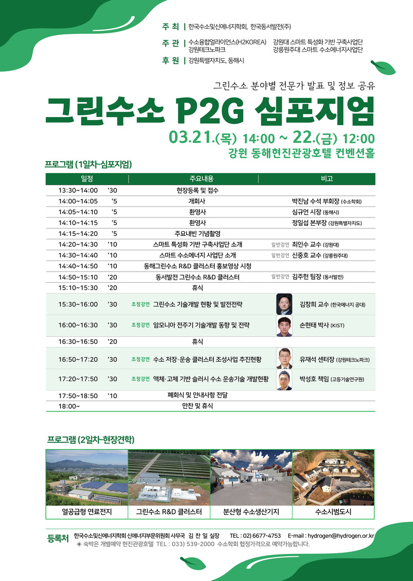 올해로 3회차를 맞는 심포지엄에서는 전문가 초청강연과 수소산업 현장견학 등이 진행될 예정이다. 이번 행사는 한국동서발전과 한국수소 및 신에너지학회가 공동주최하고 수소융합얼라이언스, 강원테크노파크, 강원대 스마트 특성화 기반 구축사업단, 강릉원주대 스마트 수소에너지 사업단이 주관하며 강원특별자치도와 동해시가 후원한다.
