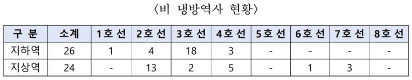 | ▲ 비 냉방역사 현황(표=서울교통공사) |