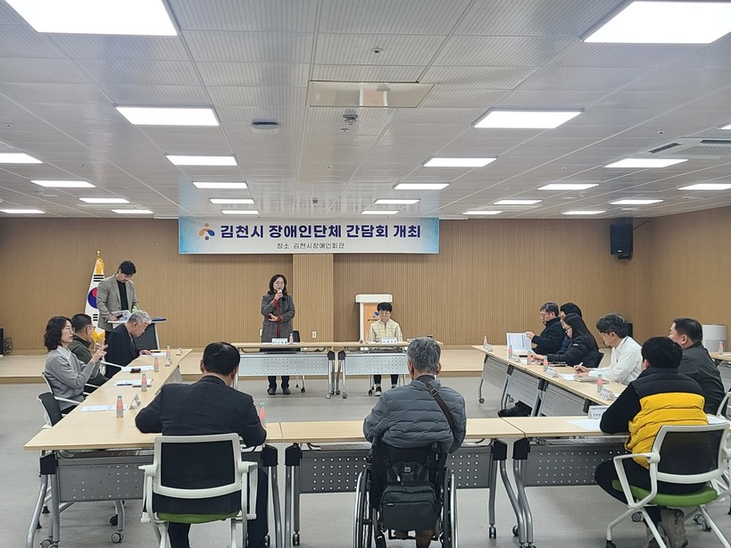 [일요주간=최부건 기자] 김천시는 지난 3월 6일 김천시장애인회관에서 장애인 복지 증진을 위해 지역 내 장애인단체 대표들과 간담회를 개최했다. 이번 간담회에는 김천시 사회복지과 관계자와 유형별・목적별 장애인단체 대표 및 종사자 등 30여 명이 참석하여 지역 내 장애인 지원방안에 대해 심도 있는 논의를 진행했다.