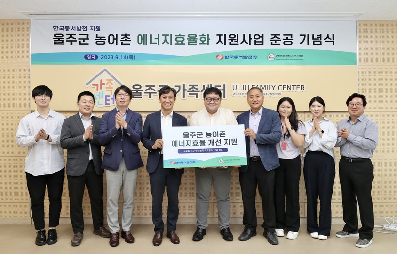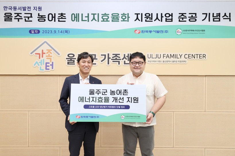 [일요주간=김영란 기자] 한국동서발전(주)(사장 김영문)은 효율이 낮은 노후 에너지설비를 개선하는 ‘울주군 농어촌 에너지효율화 지원사업’을 완료하고 14일(목) 오후 1시 30분 울산 울주군가족센터에서 준공식을 열었다.