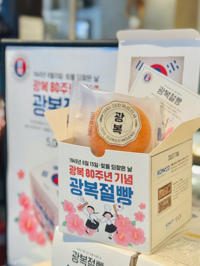 [일요주간=김영란 기자] 한국조폐공사(사장 성창훈, www.komsco.com)는 광복 80주년을 기념해 대전 대표 기업 성심당(대표 임영진)과 공동 개발한 ‘광복절빵’을 7월 4일부터 8월 17일까지 성심당 전 지점에서 한정 판매한다.