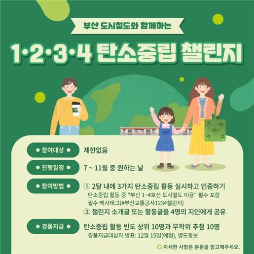 | ▲ 「부산도시철도와 함께하는 1·2·3·4 탄소중립 챌린지」 캠페인 포스터(이미지=부산교통공사) |