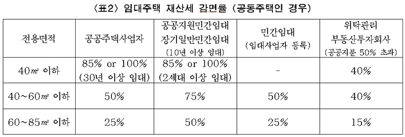 | ▲ (표2) 임대주택 재산세 감면률 (공동주택인 경우) (표=SH공사) |