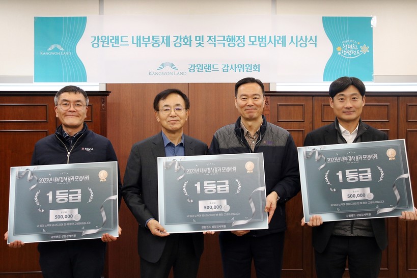 이와 함께, ‘내부감사 품질 경진대회’는 올해 강원랜드 내부감사를 통해 상시 발굴한 우수사례로서 강원랜드 감사결과심의위원회가 경영기여도와 노력정도를 심사해 총 17건을 선정해 시상했다.
