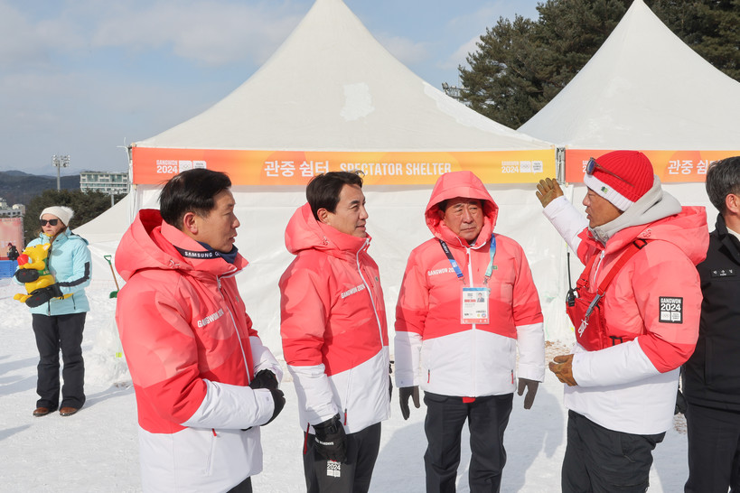 [일요주간=김영란 기자] 22일부터 기온 급강하로 도내 전역에 한파특보가 발령되고 체감온도가 영하 20도까지 내려감에 따라 김진태 강원특별자치도지사가 23일 오후 2024 강원동계청소년 올림픽 설상경기가 운영되고 있는 횡성 웰리휠리파크 내 한파쉼터를 점검했다.