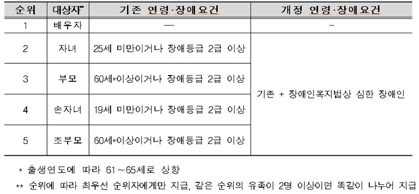 | ▲ 유족연금 지급 대상(표=국민연금) |