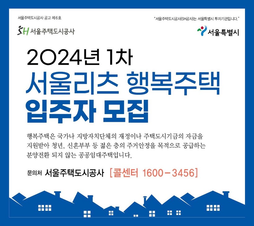 [일요주간=김영란 기자] 서울주택도시공사(SH공사, 사장 김헌동)는 서울리츠 행복주택 304세대의 입주자를 모집한다고 25일 밝혔다. 입주자 모집공고문은 26일 14시 SH공사 누리집(홈페이지)에 게시된다.