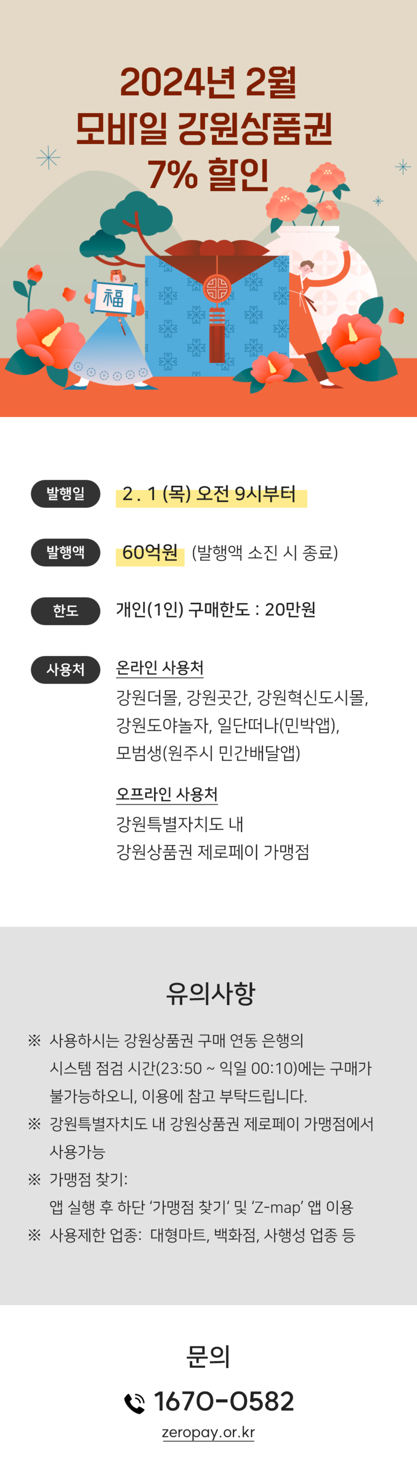 - 설 맞이 모바일 강원상품권 발행 60억 원, 7% 특별 할인 판매