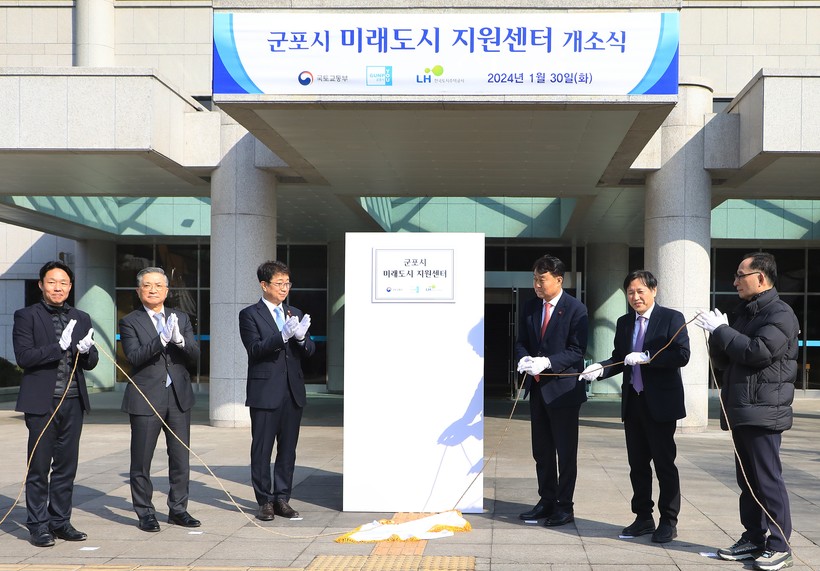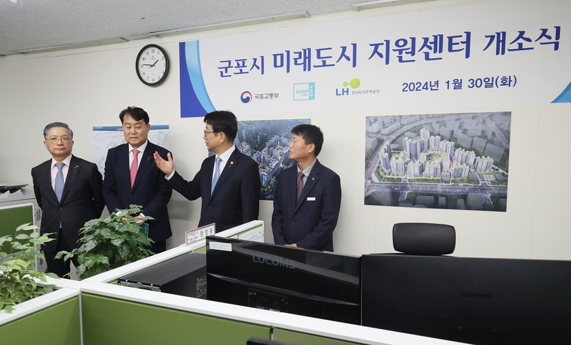 이날 군포시 미래지원센터 개소식에는 국토교통부 박상우 장관, LH 이한준 사장, 하은호 군포시장이 참석해 노후 도심 정비사업 지원계획, 주민과의 소통방안 등을 밝혔다.