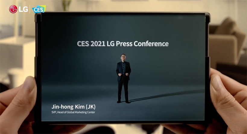 [일요주간 = 지혜수 기자] LG전자는 미국 동부시간 11일 세계 최대 가전·IT 전시회 ‘CES 2021’의 개막에 맞춰 프레스 콘퍼런스를 개최했다. 이 콘퍼런스 행사에서 모두의 관심을 받고 있는 LG 롤러블폰의 티저를 공개해 화제가 되고 있다.