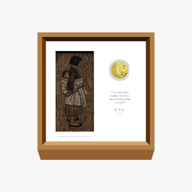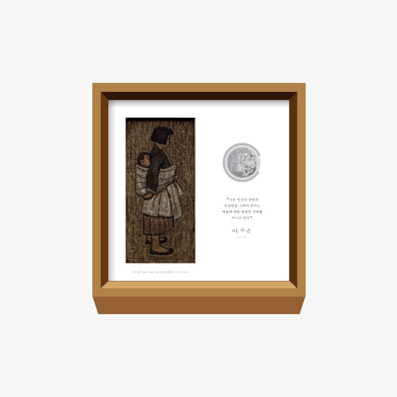 ‘박수근 대표작품 결합 기념메달’은 박수근 화가의 대표작을 특수판화로 제작하여 기념메달과 결합한 액자형태로 작품을 온전히 느낄 수 있도록 제작하였다.