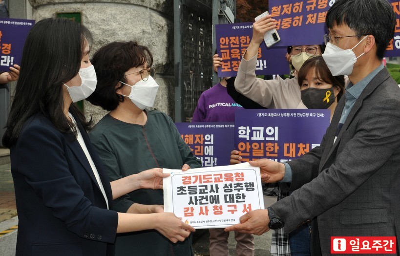 이들은 기자회견 직후, 수원시 경기도교육청 남부청사 측에 가해 교사에 대한 처벌 촉구 및 성추행 사건의 진상 규명 등을 요청하는 감사 청구서를 제출했다.