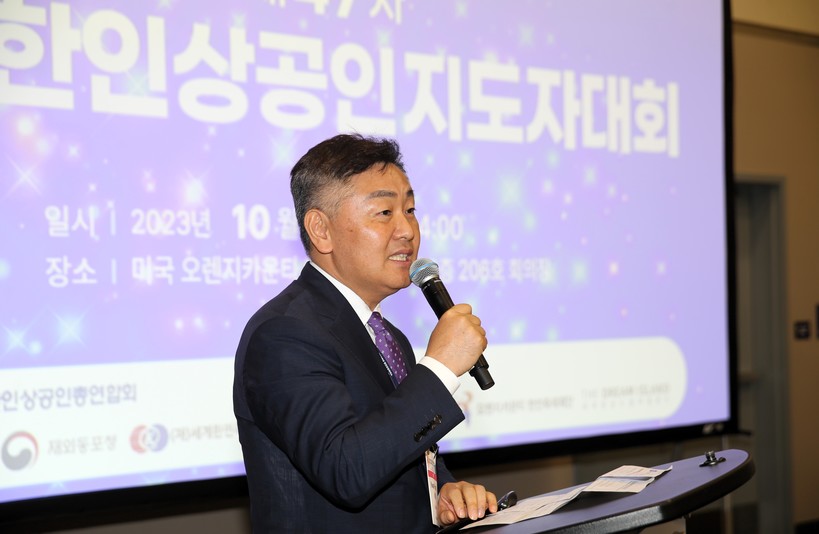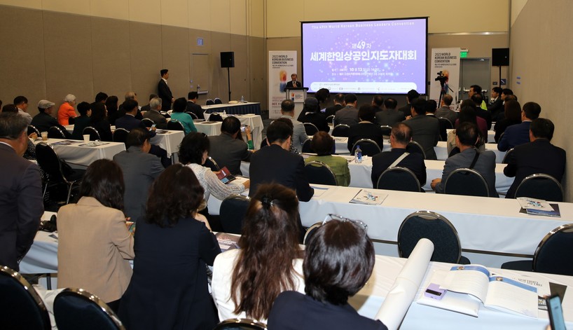 [일요주간/샌프란시스코=정승덕 기자] 지난 10월 13일 제21차 세계한인비지니스대회가 열리고 있는 미국 오렌지 카운티 애나하임컨벤션센터 2층 206호실에서 오후 2시부터 2023 제49차 세계한인상공인지도자 대회가 (사)세계한인상공인총연합회 (이사장 김덕룡) 주최로 열렸다.