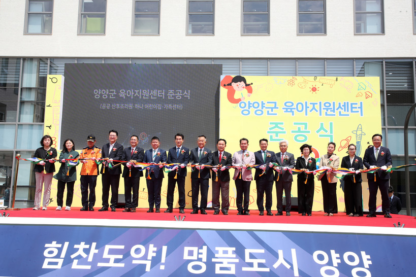 이날 함께 준공되는 양양군 육아지원센터는 공공산후조리원과 더불어, 하나어린이집, 다함께돌봄센터, 가족센터, 공동육아나눔터, 작은도서관, 어린이급식관리지원센터까지 총 7개 시설(6,567.1㎡)로 구성되어 있다.