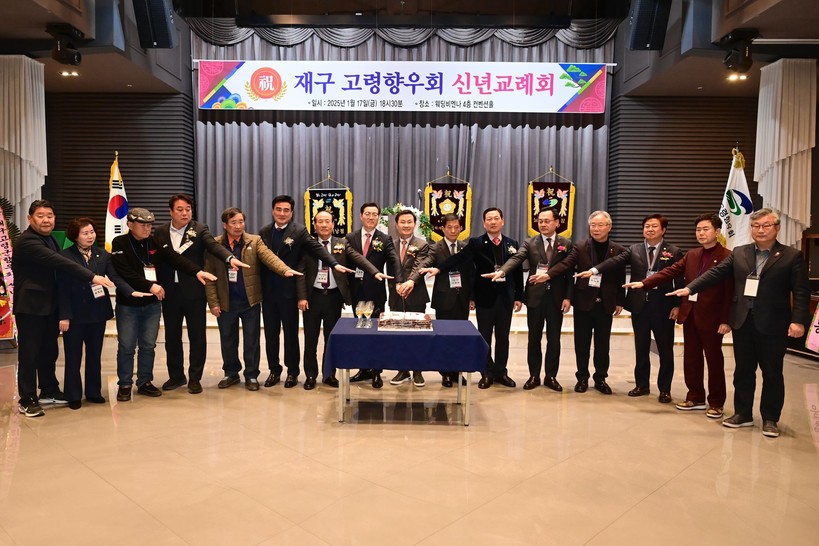 [일요주간=최부건 기자] 재구고령향우회(회장 오명환)는 1월 17일 대구 웨딩비엔나에서 이남철 고령군수, 이철호 고령군의회의장을 비롯한 도·군의원, 간부공무원, 향우회원 등 150여 명이 참석한 가운데 2025년 신년인사회를 개최하여, 고향의 발전과 번영을 위한 소통과 화합의 자리를 마련하였다.