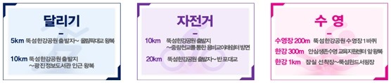 ‘달리기’ 종목은 5㎞와 10㎞, 두 코스로 이뤄진다. 달리기 종목 또한 걷거나 뛰는 것은 물론 잠시 쉬어도 된다. 유아차를 밀며 참여하는 것도 가능하다.