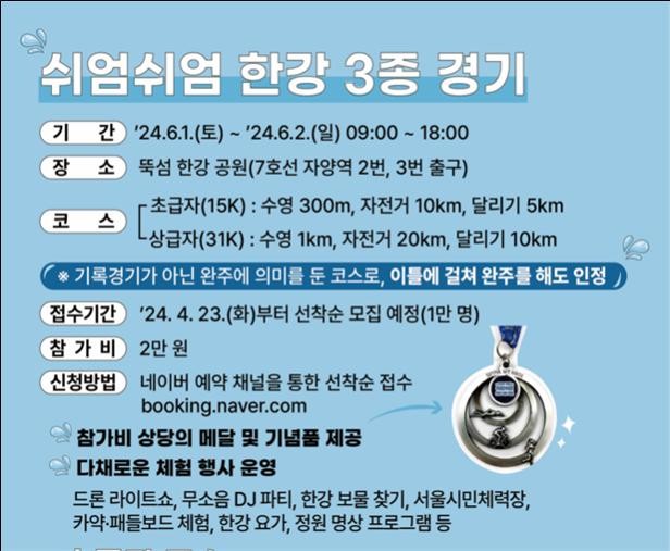 ▲ 제1회 쉬엄쉬엄 한강 3종 경기 참가자 모집 안내(이미지=서울시) |