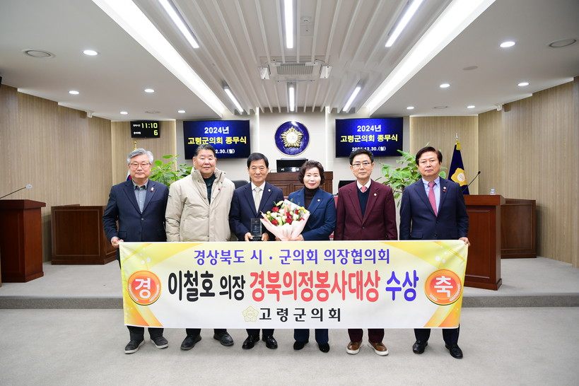 경상북도 의정봉사대상은 투철한 봉사정신으로 지역사회의 발전과 주민 복리 증진에 기여한 의원에게 수여되는 권위 있는 상으로, 이철호 의장은 군민들의 목소리를 적극적으로 반영하고 고령군의 발전을 위해 꾸준히 노력한 공로를 인정받아 수상의 영예를 안았다.