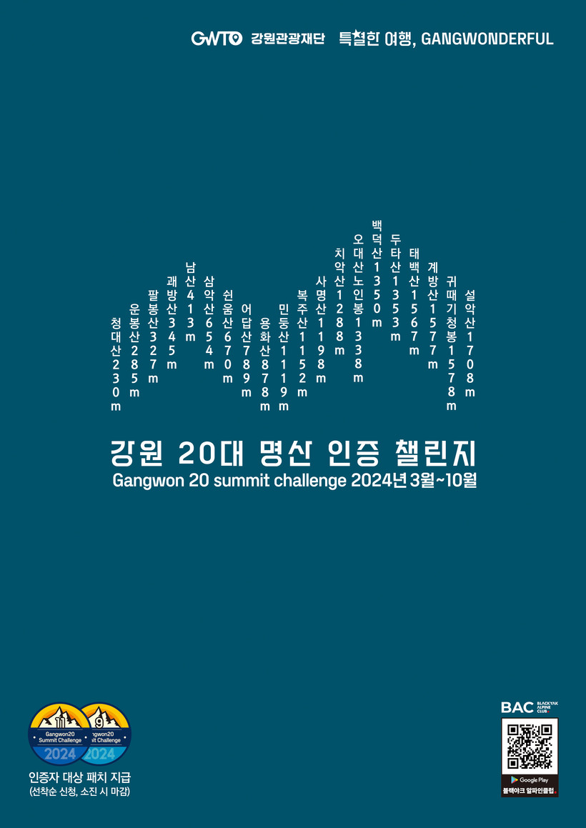 ▲ 2024 강원 20대 명산 인증 챌린지 메인 포스터 (이미지=강원도) |