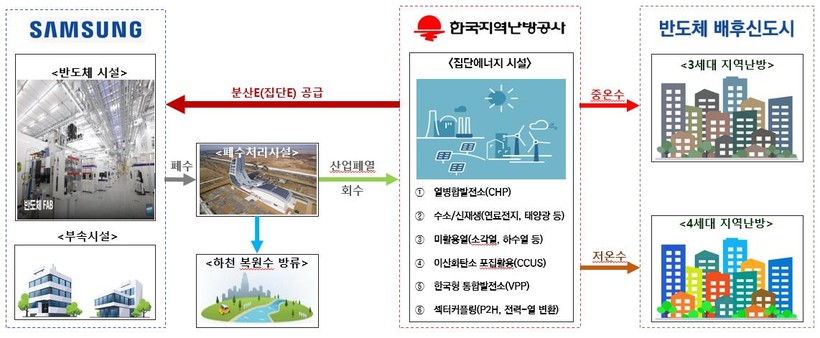 이를 위해, 한난과 삼성전자는 반도체공장에서 발생하는 폐열 방류수를 히트펌프를 이용해 승온시켜 지역난방 열원으로 활용하는 신기술 적용 시범사업을 연내 착수하기로 뜻을 모았다.