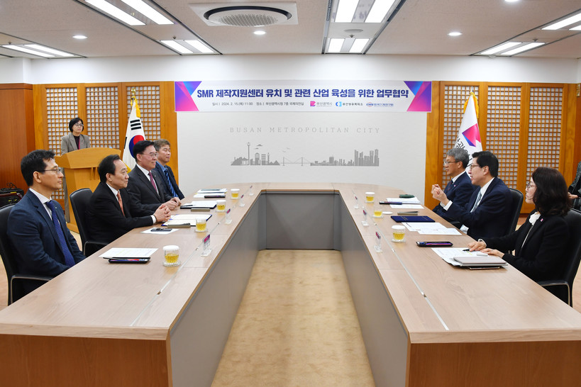 [일요주간=김영란 기자] 부산시(시장 박형준)는 오늘(15일) 오전 11시 시청 국제의전실에서 부산상공회의소(회장 장인화), 한국기계연구원(원장 류석현)과 '소형모듈원자로(SMR) 제작지원센터 유치를 위한 업무협약'을 체결한다고 밝혔다.