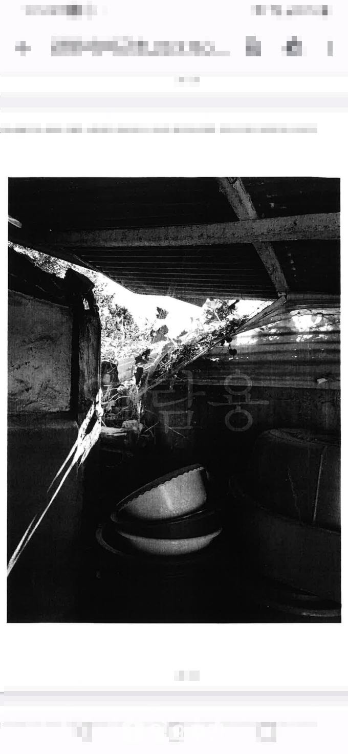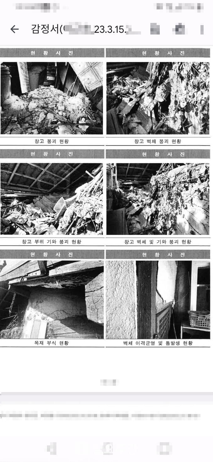 | ▲감정서에 첨부된 주택 창고 붕괸 사진.(사진=제보자 제공) |