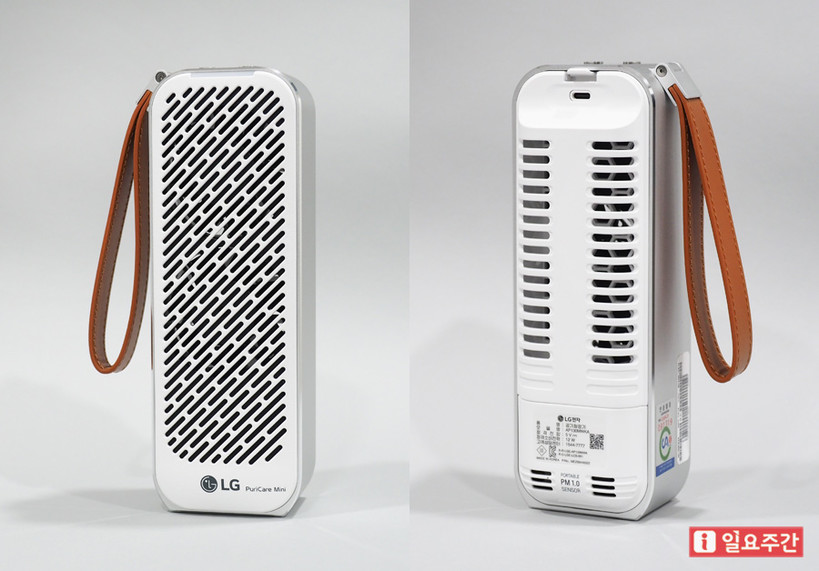 ▲LG 퓨리케어 미니 공기청정기의 앞면과 뒷면 (사진=지혜수 기자) |