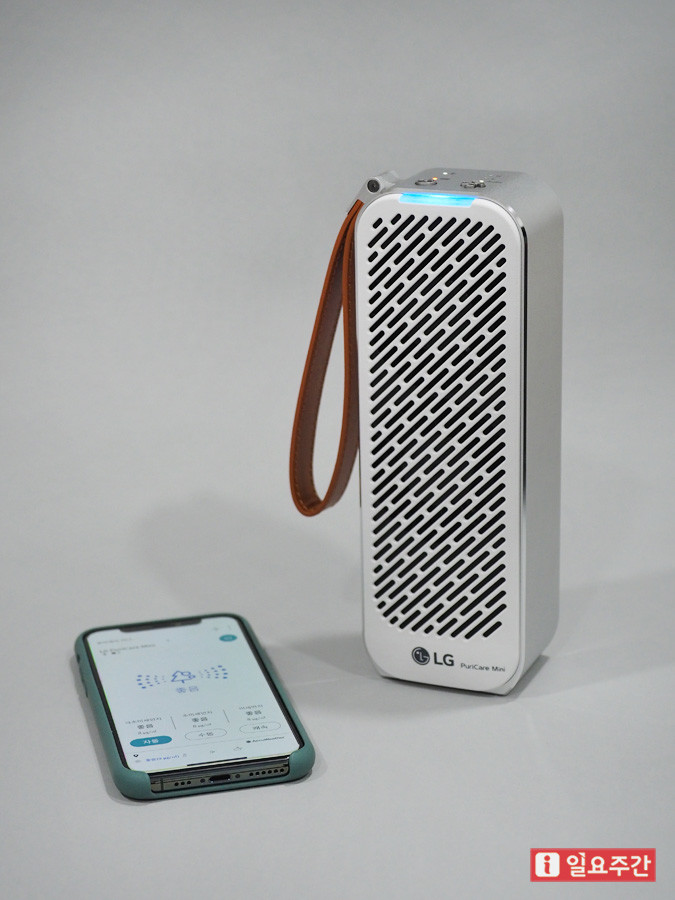 ▲포터블 타입의 LG 퓨리케어 미니 공기청정기 (사진=지혜수 기자) |