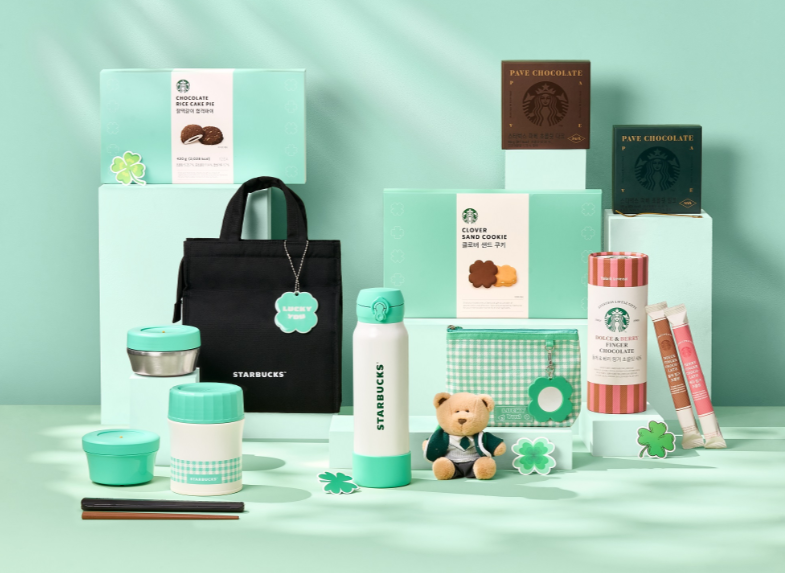 21일 스타벅스에 따르면 전국 매장과 온라인 채널을 통해 판매되는 이번 상품은 행운의 상징인 네잎클로버를 테마로 디저트, 초콜릿, 보온 도시락, 보온병 등 다양한 선물로 구성됐다.