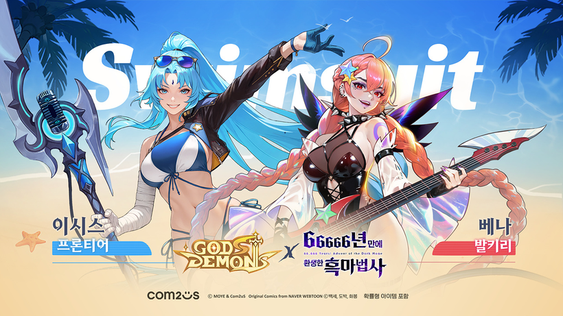 3일, 컴투스에 따르면 여름 분위기를 만끽할 수 있는 여름 파티 이벤트를 통해 갓앤데몬의 대표 영웅 4종이 여름 테마 스페셜 스킨으로 새롭게 단장한다. 네이버 웹툰 66666년 만에 환생한 흑마법사와 컬래버한 캐릭터 프론티어 이시스와 발키리 베나는 해변의 음악 페스티벌을 연상시키는 역동적인 매력을 담았으며, 빛의 여신 오스타라는 태양빛 아래 청명한 바닷가를, 레이스 위치 셀릿은 심해의 신비로운 분위기를 표현해 시선을 사로잡는다.