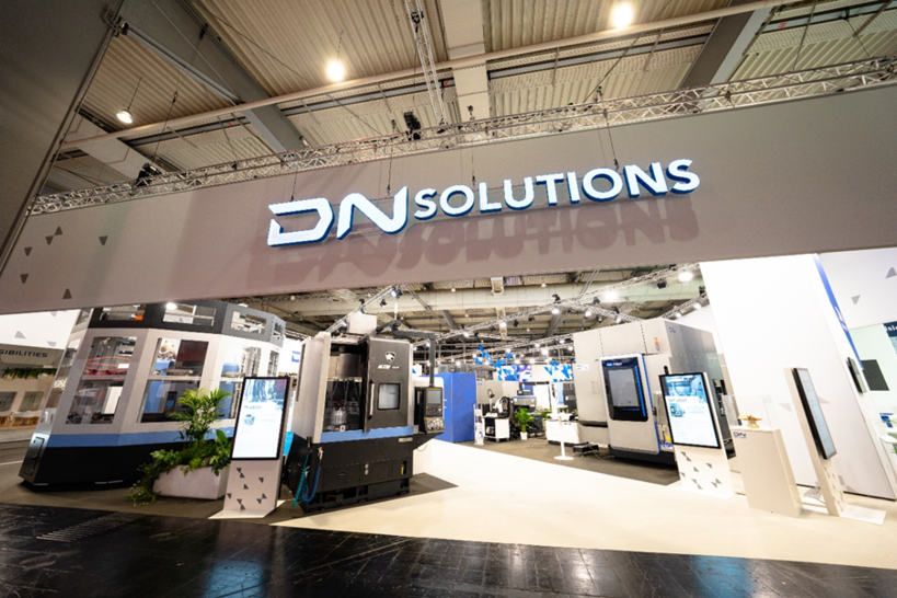 ▲ 지난 9월 독일 하노버에서 개최된 EMO 2025 전시 당시 DN솔루션즈 부스 전경.(사진=DN솔루션즈 제공) |