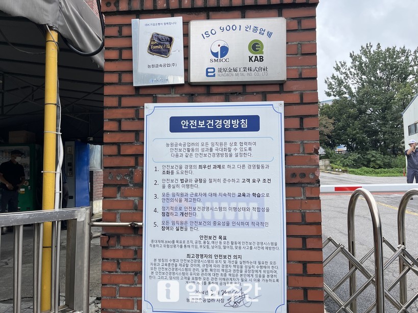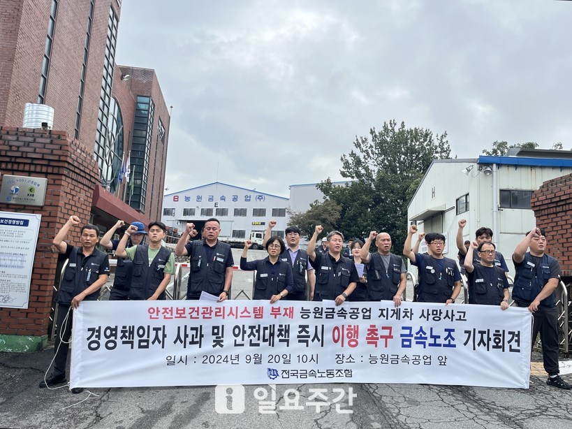 지난 20일 전국금속노동조합 서울지부 경기북부지역지회 능원금속분회(이하 금속노조)는 경기도 양주시 은현면에 위치한 능원금속공업 앞에서 기자회견을 열고 능원금속공업에 경영책임자 사과 및 안전대책 즉시 이행을 촉구했다.