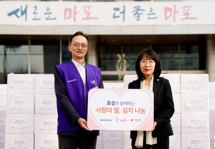 효성은 마포구 취약계층을 위해 2006년부터 쌀을, 2007년부터 김치를 매년 마포구청에 전달하고 있다.