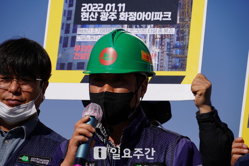 민 타설노동자는 “층고가 상당히 높음에도 불구하고 하부에 안전조치하나 이뤄지지 않은 위험한 공법이다. 타설노동자들이 타설높이를 조금만 높여도 처짐현상과 추락사고로 연결된다”면서 “공사기간 단축을 위한 공법 때문에 왜 노동자들이 사망해야 하는가”라고 분통을 터뜨렸다.