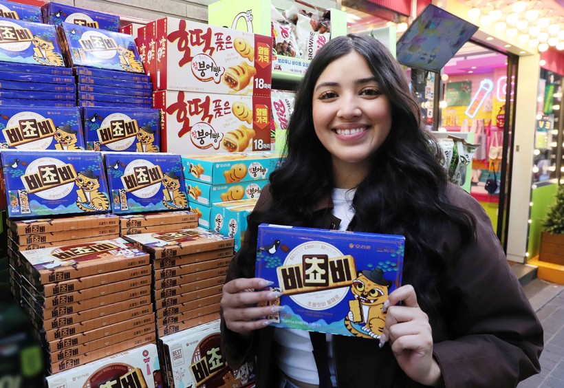 6일 오리온에 따르면 제품 패키지에 한국 전통의상을 입힌 ‘비쵸비 코리아 에디션’은 롯데마트 제타플렉스 서울역점에서 과자 카테고리 판매량 1위를 차지할 정도로 한국을 방문한 외국인 관광객들로부터 폭발적인 호응을 얻고 있다. 최근 전 세계를 강타한 ‘케데헌’ 속 ‘더피’의 모티브가 된 ‘호작도’와 8가지 문화유산을 담은 ‘비쵸비 국립중앙박물관 에디션’ 또한 높은 판매고를 보이면서 올해 3분기까지 비쵸비 매출은 출시 이듬해인 2023년 동기 대비 80% 성장했다.
