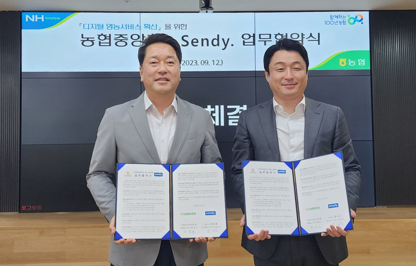[일요주간 = 김완재 기자] 농협중앙회(회장 이성희)는 12일 화물운송 플랫폼 ㈜센디와 디지털종합영농플랫폼 'NH오늘농사'의 출하배차 서비스 확대 및 현장 이용 확산을 위한 업무협약(MOU)을 체결했다.