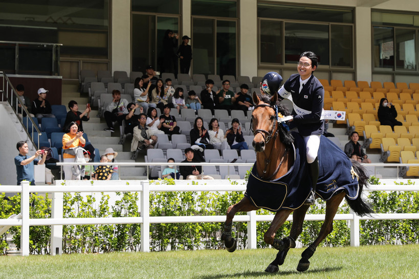 [일요주간 = 이수근 기자] 한국마사회(회장 정기환) ‘88승마경기장’에서 지난 10일부터 12일까지 열린 ‘2024 KRA컵 아시아 주니어 승마대회(KRA CUP CSIJ-B Seoul 2024)’가 막을 내린 가운데 한국의 김형호(천안중앙고부설방송통신고)선수가 장애물 개인전 110cm 경기에서 승용마 ‘한화카라노’와 우승을 차지했다.