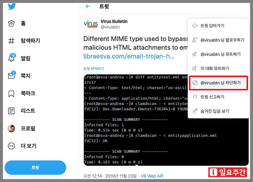 ▲ 트위터 특정 사용자 차단 기능 활성화 개시 (사진=이수근 기자)