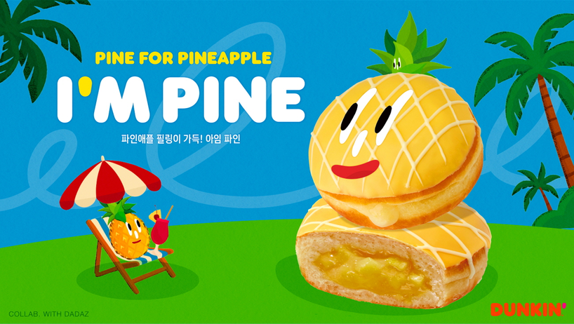 11일, 던킨에 따르면 이달의 도넛 ‘아임 파인(I’m Pine)’은 파인애플을 콘셉트로 한 필드 도넛으로, 상큼한 파인애플 필링을 가득 채우고 노란색 코팅과 화이트 드리즐을 더해 눈과 입을 모두 사로잡는다. 파인애플 잎을 형상화한 종이 픽으로 마무리해, 실제 파인애플을 떠올리게 하는 귀여운 비주얼을 완성했다.