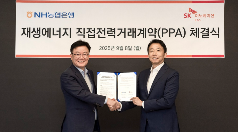 SK이노베이션 E&S는 지난 8일 서울 종로구 SK서린빌딩에서 NH농협은행(은행장 강태영)과 재생에너지 직접전력거래계약(PPA, Power Purchase Agreement)을 체결했다고 9일 밝혔다. 이번 협약은 SK그룹의 친환경 에너지 확대 전략과 발맞춰, 민간기업 간 RE100 달성을 위한 실질적 협력 모델로 주목받고 있다.
