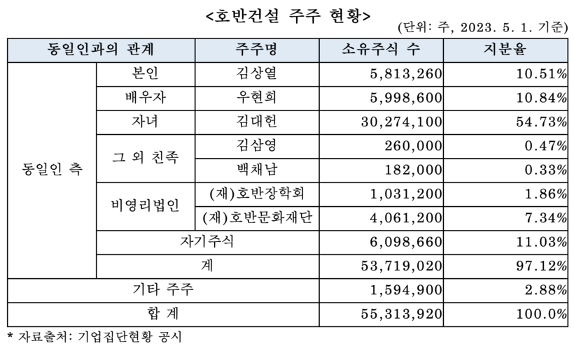 공정위에 따르면 호반건설은 벌떼입찰 등 상당한 노력과 비용을 투입해 낙찰받은 23개 공공택지를 2세 회사(호반건설주택·호반산업)에게 대규모로 양도했다. 결과적으로 23개 공공택지 시행사업에서 분양매출 5조 8575억 원, 분양이익 1조 3587억 원이 발생했다.