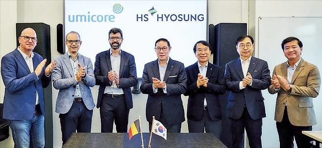 HS효성은 1억2000만유로(약 2000억원)를 투자해 유미코아와 실리콘 음극재 합작법인을 설립하고, 유미코아 자회사인 EMM을 인수하기로 했다고 밝혔다. 이번 거래는 각국 당국의 승인 절차를 거쳐 마무리될 예정이다. 100년 넘는 역사를 가진 유미코아는 배터리·촉매·반도체·우주항공 등에서 원천기술과 생산 능력을 갖춘 글로벌 소재 기업이다.