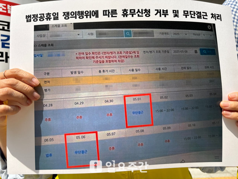[일요주간=임태경 기자] 민주노총 서비스연맹 마트산업노동조합(이하 마트노조)이 노동절 쟁의 참가자에 대한 결근 처리, 연차 반려, 파업 회유·협박 등 코스트코코리아(이하 코스트코)의 부당노동행위를 고발하고, 고용노동부의 특별근로감독을 촉구하고 나섰다.