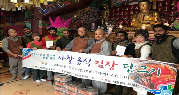 2일 (재)대한불교 비로자나불도량 부혜사(이사장 고공주)는 스리랑카 산업연수생 12명을 초청하여 ‘김장담그기’ 체험과 더불어 사랑의 나눔 행사를 진행했다고 밝혔다.