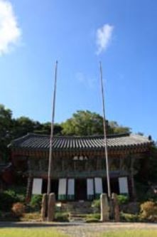 | ▲ 적천사 대웅전과 당간.ⓒ문화콘텐츠닷컴 |