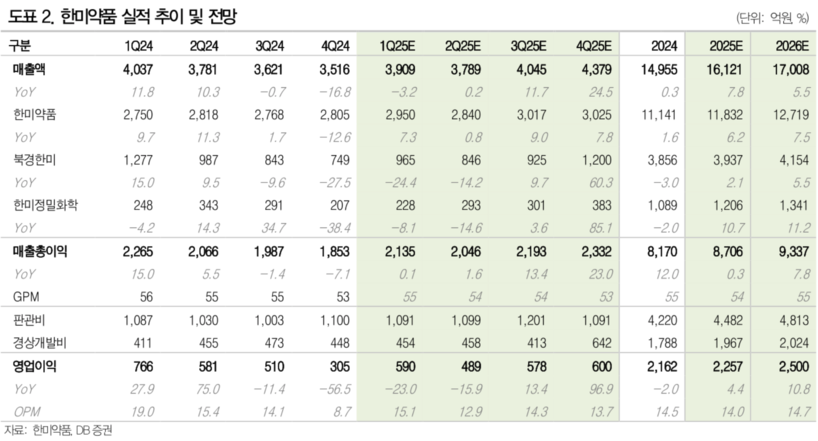 [일요주간 = 김완재 기자] DB증권은 30일 발표한 보고서를 통해 한미약품(128940)의 2025년 상반기 실적이 다소 부진했지만 하반기부터는 실적과 연구개발(R&D) 성과 모두 뚜렷한 회복이 기대된다고 밝혔다. 이에 따라 투자의견 '매수(Buy)'를 유지하고 목표주가를 32만 원으로 제시했다.