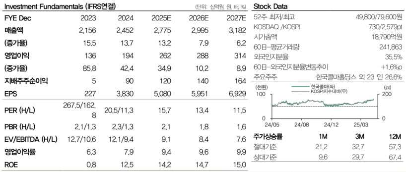 이러한 전망에 따라 DB증권은 한국콜마의 2025년 영업이익 추정치를 기존 대비 8% 상향 조정했으며, 국내외 생산 효율성 및 수익성 제고를 기반으로 한 밸류에이션 매력도 높아질 것으로 평가했다.