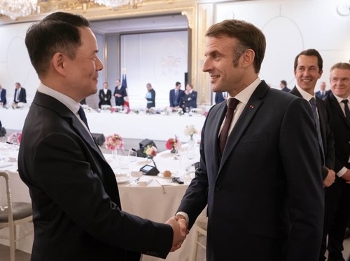 ▲ SPC그룹의 허진수 사장(좌)이 지난 21일 에마뉘엘 마크롱 프랑스 대통령이 주최한 만찬에 초청받아 참석했다. (사진=SPC그룹 제공) |