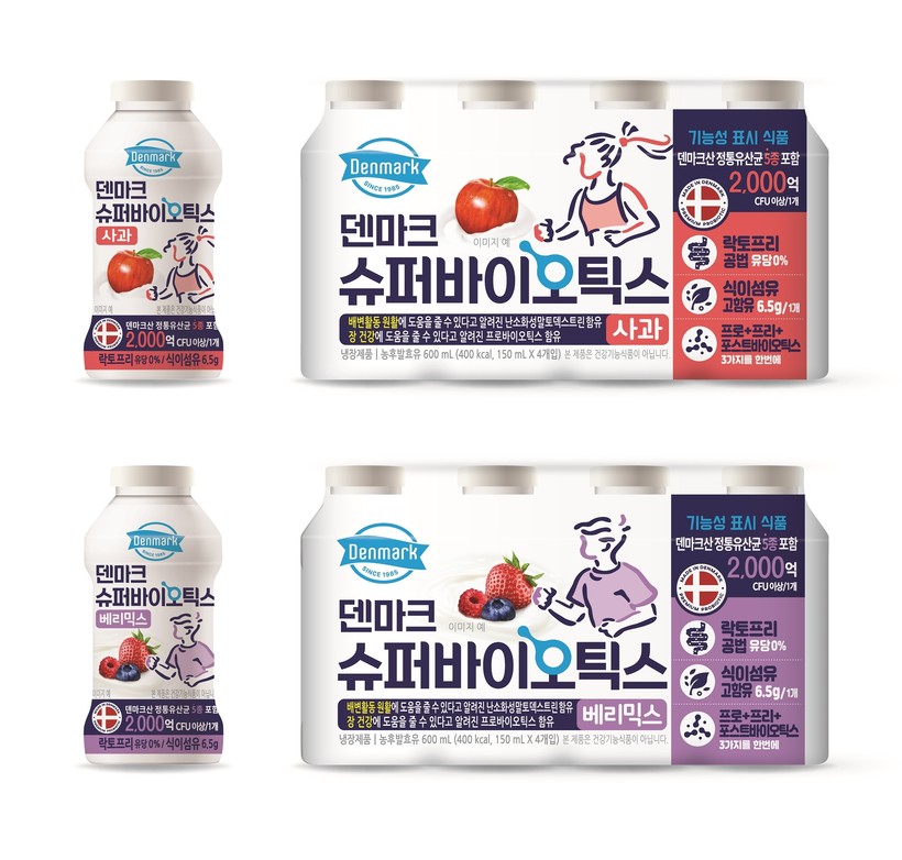 ▲ 동원F&B가 덴마크산 정통 유산균을 함유한 ‘덴마크 슈퍼바이오틱스’ 2종(사과, 베리믹스)을 출시했다.(사진=동원F&B 제공) |