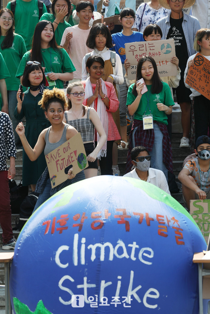 | ▲ 지난 5월 24일 서울 종로구 세종문화회관 앞에서 524청소년기후행동이 주최로 열린 기후변화 대응촉구 집회에서 참석자들이 플래시몹을 하고 있는 모습. |